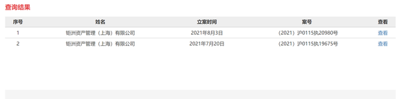 上述两件案件的案号为(2021)沪115执20980号和(2021)沪115执19675号,执行标的总计4743589.04元,执行法院均为上海市浦东新区人民法院。
