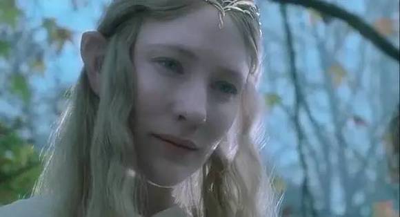 2001年,摇身一变,她又成了《指环王》里美的让人屏住呼吸,不食人间烟火、权利与智慧象征的精灵女王。