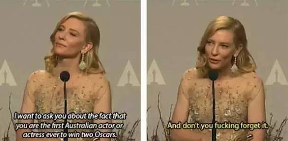 “在成为史上第一位两获奥斯卡的澳大利亚演员了,对此你的看法是?“