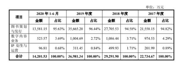 电影投资比卖书赚钱来得快,但并没有持续,2018-2020年,数字内容业务及IP衍生与运营收合计占比不超过5%,到了2020年营收仅150万元,占比仅有0.44%。