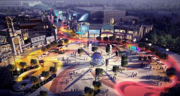 每个主题乐园的门口都有一个重要的商业配套区。上海的迪斯尼乐园外围的迪斯尼小镇和北京环球影城外部的环球城市大道就是这样一个区域。