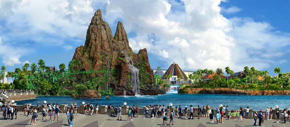 为了逼真还原影片场景,将植被密布、充满原始气息的高山“搬”到乐园,项目工程师可谓绞尽脑汁。这个板块,有一座49.5米高的“钢山”,是由9,400个钢构件“合抱”而成,工程师们通过19,398张图纸,25种专业共同合作,才完成了这样的一个深度沉浸体验场景。
