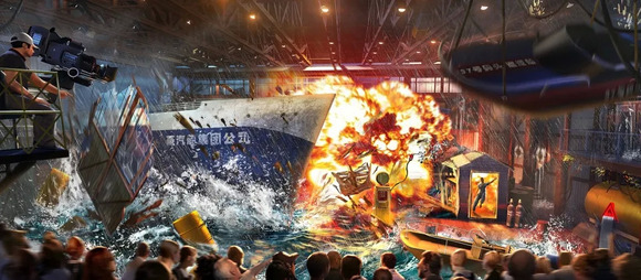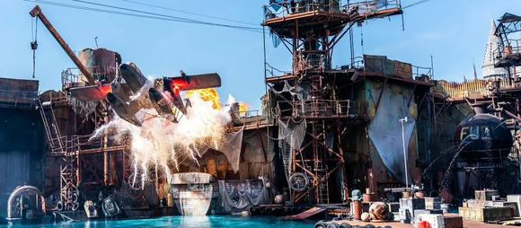 上世界90年代的著名电影《未来水世界》是这个区域的创作原型。未来水世界的“水上爆破特效”一直以来都是环球影城最受欢迎的项目之一。