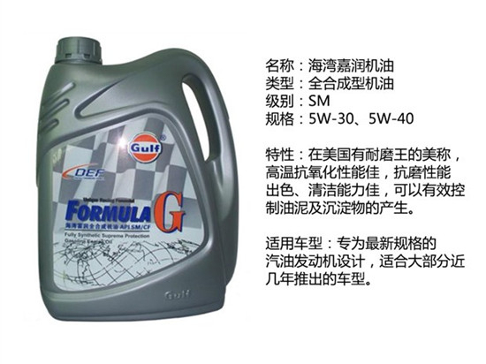 海湾富润全合成机油是海湾机油中的高端主打产品。它的特点是在低温启动性和发动机清洁能力方面进行了专门的配方优化,从OW的规格就可以看出,它在寒冷的冬季将会非常容易启动,保护发动机零件免受磨损,并且在高温时也拥有优异的表现,在降低油耗的同时还可以减少废气的排放。且该系列产品还获得了奔驰、宝马的原厂认证,这个系列的机油对于豪华车而言非常适合。