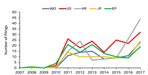 2)韩国申请专利数量最多
