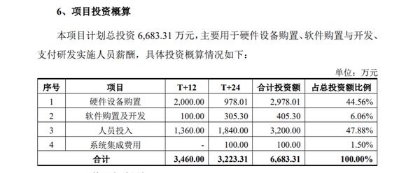 数据中心建设及信息系统升级项目概算(数据来源:企业招股书)