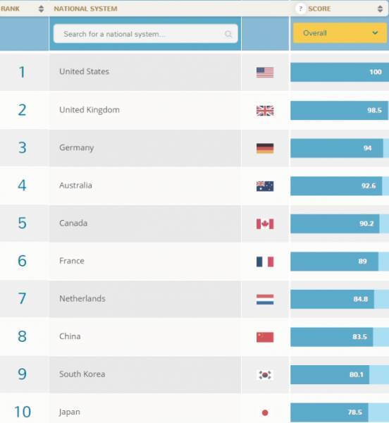 加拿大位列名单第五位,中国的高等教育排名则世界第八位,超越日韩成为亚洲第一位。