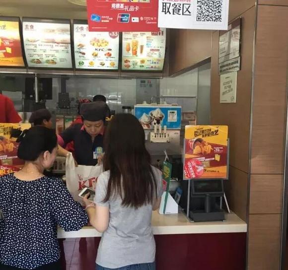 (肯德基的点餐区和取餐区并没有明显分开,所以经常会造成点餐人误排到了取餐队,使用户体验极具下降,而人流的交织在高峰时也显得有些凌乱,含排队时间耗时:1分57秒)