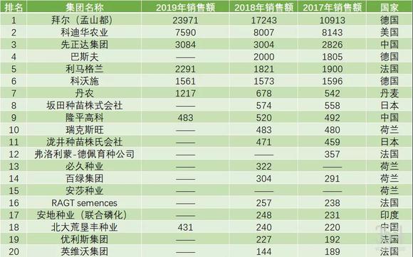 全球种业市场正发生深刻的变革,国际大型种业公司规模在不断壮大,通过外延并购,使得各个国家种业集中度不断提高,种业企业正在向多元化、集团化与国际化发展,在众多种业企业中,TOP20种业集团遥遥领先于其他种业公司。