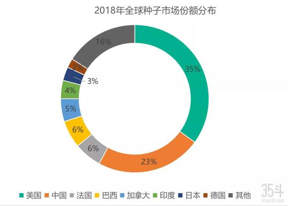 纵观全球种业企业市场,呈现中、德、美三足鼎立局面,TOP20种业集团形成了“两超、四强、差异化发展”的新格局。单看种子市场份额,2018年统计数据显示美国占比全球份额的35%,中国占比全球份额的23%,远超其他国家。在TOP20集团形成的格局中,“两超”指的是是拜耳、科迪华农业,两者销售额占据TOP20的60%,两大集团在转基因作物与现代生物技术领域拥有绝对优势,其中拜耳也是全国最大的蔬菜公司。