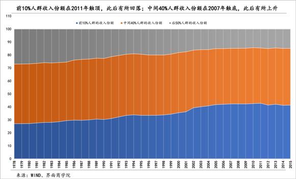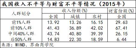 3、我国财富不平等问题比收入更为严重。WID最新发布的截至2015年的各国财富分布数据显示,我国前1%人群占有的财富份额达到近三成,前10%人群占有的财富份额超过67%,中间40%人群的财富份额仅为26.2%,后50%人群的财富份额只有6.4%。