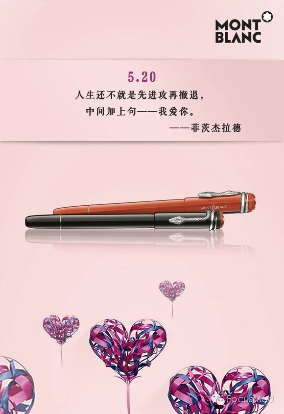 菲茨杰拉德说:“人生还不就是先进攻再撤退,中间加上一句——我爱你。”#520表白日#,进攻但绝不撤退,用万宝龙传承系列“红与黑”特别版书写工具,一红一黑,表述自己的情意,开启爱的旅程。
