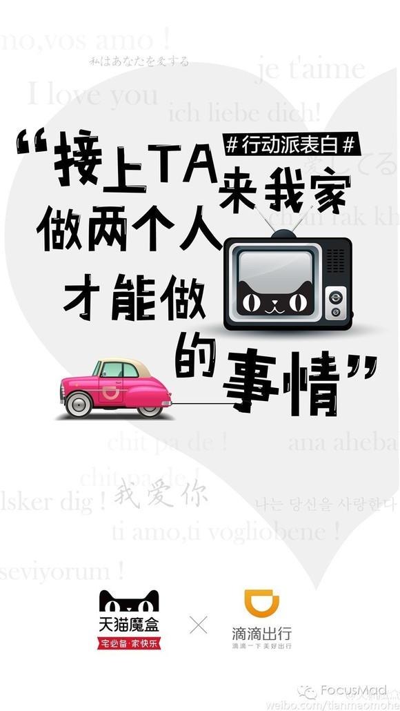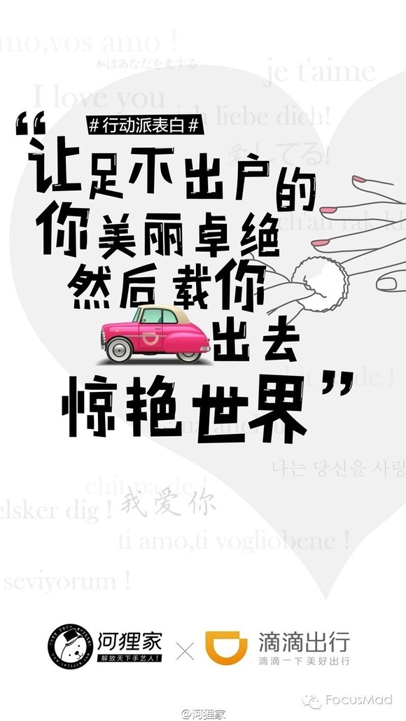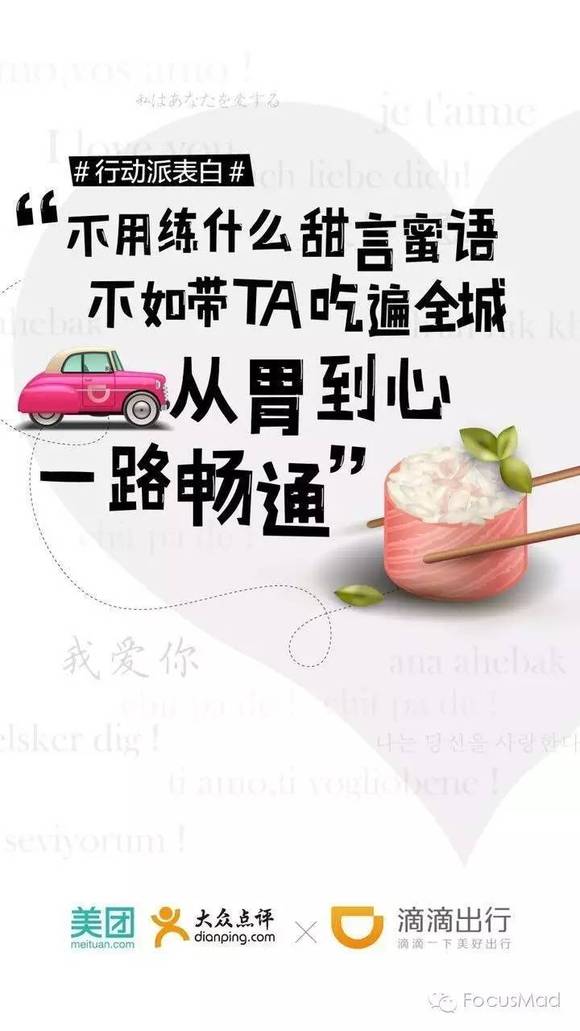 除以上跨界合作的品牌外(不完全列举),滴滴又联动天猫、楚楚街、美团等来了一发#行动派表白#。520表白日,滴滴的营销可谓多管齐下。