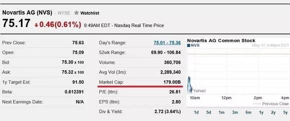 到了1996年,山度士企业集团与另外一家瑞士制药公司汽巴嘉基合并成立新公司,就是现在的诺华制药——年销售额约500亿美金、全球数一数二的制药企业,最新市值接近1800亿美金。