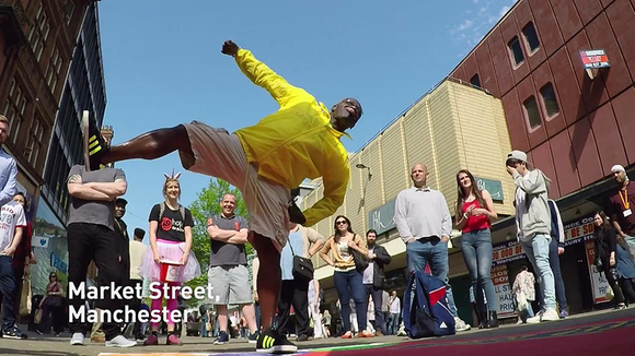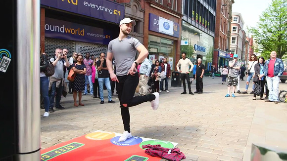 最近,在曼彻斯特的街头出现了一群奇怪的路人,其中有年轻姑娘、小伙子,也有头发花白的大爷大叔。他们站在一块大屏幕前,用身体摆出各种单脚站立、蜷缩成球的姿势,吸引了不少围观者。