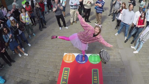 这些“行为艺术家”其实是一群普通的路人正在对着一张宣传海报玩游戏。海报是一块类似体感游戏的屏幕,它有触摸感应和实时辨识姿势的功能。路人需要根据提示,用身体摆出屏幕上显示的字母,如果姿势正确,他们就能收藏该字母,参与Walkers假期游的活动。(顺便跟你科普一下,Walkers是乐事在英国的名字。)