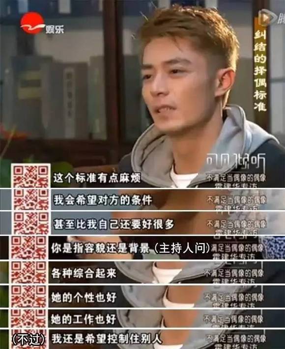 林青霞那个年代的女明星,似乎不管你有多花容月貌、多事业成功,在挑选对象上一定要嫁给让自己有安全感的富商,至于长相嘛戳瞎自己双眼就好了——“男人嘛,长得那么好看做什么?!”可是长得不行也并不见得就忠诚好吧,也许是被压抑久了才是饥不择食。总之女人在漫长的岁月里都是耳听爱情,根据社会强加给你的条条框框去套自己的婚姻。