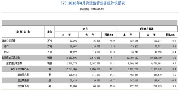 近期海关总署发布的数据显示,4月出口货运量11227万吨,同比大幅下滑24.3%,进出境的汽车、火车、船舶、飞机四种运输方式中,只有船舶的数量在下降。
