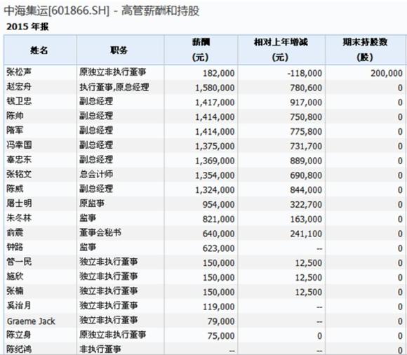 2012年中,中海集运也曾在行业巨亏时给高管层有过一次大幅加薪,部分高管薪酬从百万元暴增到近300万元,当时也引起市场关注。公司投资者关系部曾解释,因主业大幅减亏,据中海集团内部考核指标,涨薪与减亏挂钩。