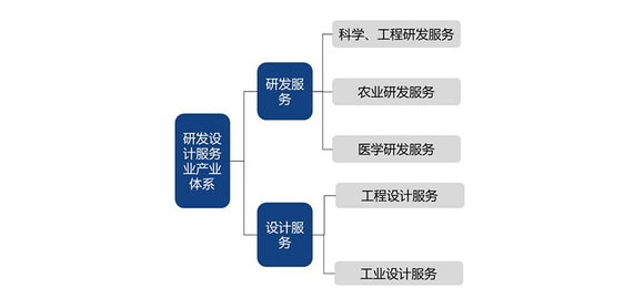 首先是研发设计服务业,它主要包含两部分内容,一个是研发服务,包含科学工程研发服务、农业研发服务和医学领域的研发服务,一个是设计服务,包含工程设计和工业设计。