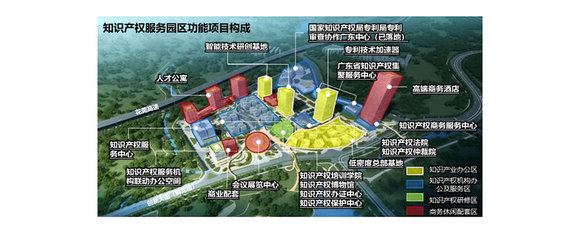 广州经开区知识产权服务园区是一个专业性集聚园区,当时的背景是广州市有很多的中小科创企业,对知识产权的需求是比较强烈的,也考虑到广州市的知识产权服务比较分散,所以提出要打造一个知识产权服务园区。它的体量有78万方,提出了要立足广东、辐射华南、示范全国的发展愿景。它的功能方面规划了四大功能区16大重点项目,涵盖行政办公孵化、教育培训、会议展示、文化休闲等多种功能,要打造覆盖代理、咨询、商用化、交易、融资等全周期服务链的知识产业创新赋能基地。