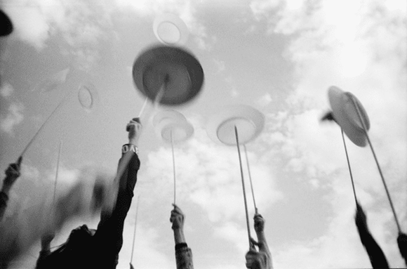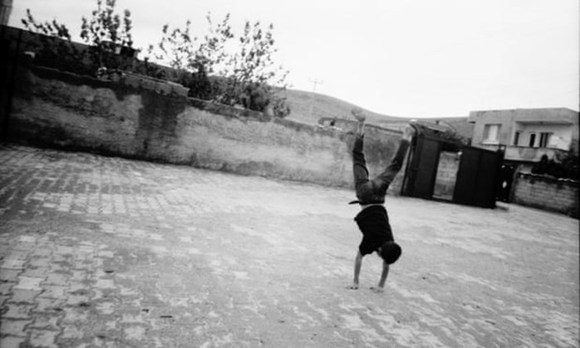 影集中的许多图像都是像素不高的单色照片,这只会更容易引发人们的共鸣:一群鸟儿分散在灰蒙蒙的天空上;一个孩子的影子落在一个破旧的院子里;一排举起的手支着细长的棍子,上面旋转着不失平衡的盘子……这群生活在土耳其临时难民聚居地的孩子们的生活,其实和你我一样,没什么不同。