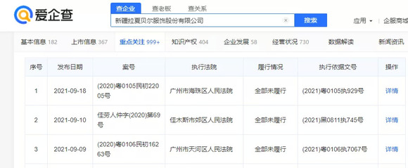 百度爱企查显示,前段时间,新疆拉夏贝尔服饰股份有限公司新增多条被执行人信息,仅9月以来被执行标的已超86万元。今年1月以来,其被强制执行40余次,总金额累计超8亿元,平均每月被执行1亿元。此外,该公司关联多项失信被执行人及终本案件,未履行总金额超4亿元。