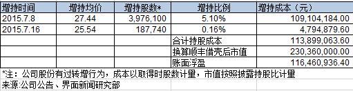 预案显示,在顺丰注入之前,中科汇通(深圳)股权投资基金有限公司以2252.96万股占有鼎泰新材10.93%的股份;在顺丰借壳之后中科的持股比例为0.52%。界面新闻查阅了中科汇通进入鼎泰新材的时间早在2015年7月8日,其在半个月的时间之内分别增持了397.6万股以及1168.6万股,增持价格分别为27.44和25.54元。界面新闻根据其获取股权的成本价以及现在估值的持股比估算,中科汇通一年不到的时间就净赚了1.16亿元,年收益超过103%。