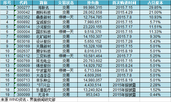 界面新闻发现,在中科汇通增持的公司中,除了5家公司持股比超过总股数的10%以外,其他的14家公司持股比均在5%左右,仅仅达到了需要披露持股比的比例限制。此外中科招商进入的时间也很有深意,19家公司中有16家进入的时间是在2015年7月,也就是去年上证指数大规模回撤之后的低点,进入时间可是相当的讨好。