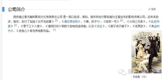 除了霍尔果斯瀚纳影业是2015年底成立,海宁和上海的瀚纳影视公司都曾经投资过影视作品,分别是一部电视剧和一部电影。 电视剧的情况如下: