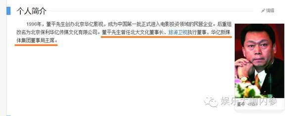这笔交易的几个关键人物分别是董平、高群、刘小林、赵超、钮铮这几个人,这些人如果搜索一下可都是影视圈响当当的人物。董平的情况是这样的: