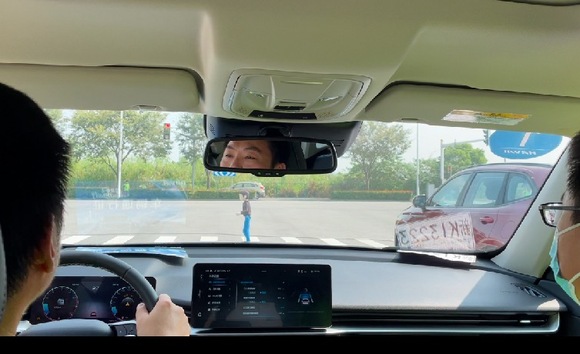 根据现场工程师讲解,这套系统的工作环境在45公里/时左右可以完全刹停,而更高速度情况下,至少可以大幅减轻碰撞力度。根据体验目测,场上的“模拟行人”离车不到5米的距离突然出现,AEB系统果断全力制动,刹停后还预留出约0.5-1米空间。