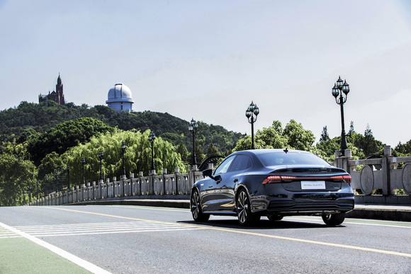 “舒适”模式下,奥迪A7L 55TFSI是一副非常典型的德国行政级轿车面貌,安静,沉稳,不慌不忙,游刃有余。前段油门不会刻意闯动,取向内敛,感受不到双离合器变速箱的调皮性格。中段出力潺潺而出,宛若中年人掌心中盘出包浆的手串,只等着给躁动不已的年轻人上一课。后段出力,没有感受,因为在上海的道路上,几乎用不到。