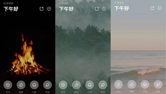 潮汐的产品思路一直围绕着极简、场景化来设计,首先通过雨声、篝火声等自然声等普适性的内容培养用户的习惯,其次再通过场景化的设计,降低用户的使用门槛,让用户直观的知道“这能为我解决什么问题”。毕竟,冥想概念在国内还并未如此深入人心,先从简单的场景切入,不失为一种教育市场的好方式。