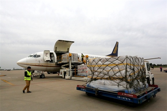 今年5月6日,石家庄机场和以往相比显得更加繁忙。上午一架货运包机运了一批富士康的电子产品前往韩国,晚上7:30又从韩国带回一批进口服饰。这条石家庄到韩国首尔的航线,将成为石家庄机场的首条运送航空快件的固定货运航线。