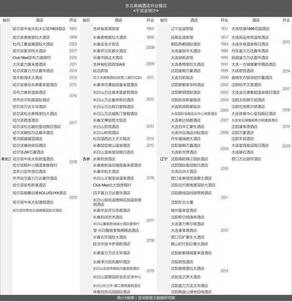 据亚洲旅宿大数据研究院统计,从2019年到2020年,东北三省黑吉辽,共开业了16家高端新酒店,分别位于哈尔滨、长春、延边、珲春、沈阳、大连、营口7座城市。