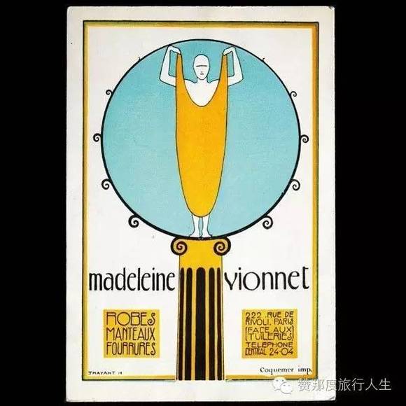 从当时Vionnet的海报中可以看出, 传统的束腰女装已经荡然无存, 而20世纪的时装革命也正是从束腰的消失开始。没有了束腰的女性身型被无暇展示, 健身, 节食与水疗从此兴盛。尽管Paul Poiret曾宣称自己是将女性从束腰中解放出来的, 可Vionnet的回答是"他做的都是戏服, 很适合放到剧场里。" Coco Chanel也宣称自己是解放者, Vionnet--"她就是个做帽子的..."