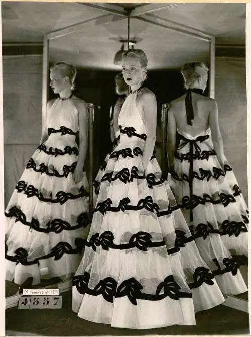 不仅如此, Vionnet将自己所有作品都以三个面的形式由照片记录下来, 并为它们命名标号, 最后以自己的指纹登记。她的举动得到了其他设计师的认同与跟随。Vionnet甚至还为可能假装买手实则是生产商的间谍的人名起草了黑名单, 与她同期并称三大设计师的Schiaparelli制定了参观她工作室的制造商必须购买至少三个款式的规矩。