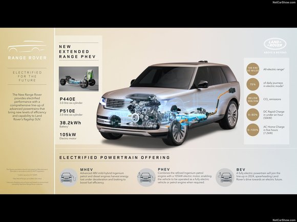 插电式混动车型配备新的38.2度电池,其WLTP认证的纯电续航里程为62英里,使揽胜成为所有在售PHEV中纯电续航里程最长的车型之一。充电能力为50千瓦快充,在一个小时内可完成80%的充电,电池组位于地板下,以实现最佳的重量分布。