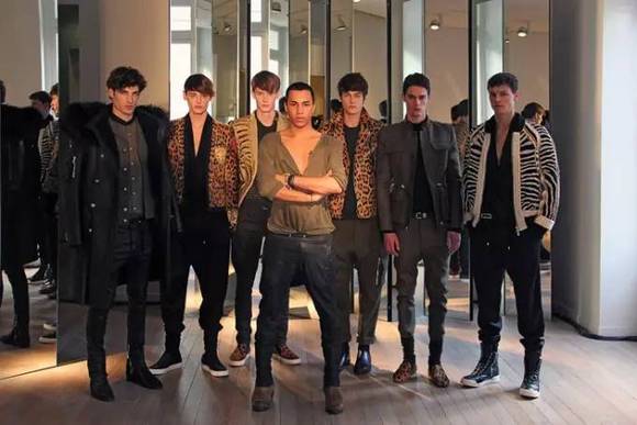 这次的焦点是Balmain的创意总监Olivier Rousteing。这个1985年出生,1岁时被父母收养的法国男孩肤色偏深,身材健美、眉目如画,海外媒体形容他时,用了“Smoking hot”这样的词,我们斗胆翻译成“性感到冒烟”。