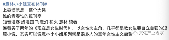 “我的青春结束了”“谢谢你盛装出席了我的童年”......在#意林小小姐宣布休刊#的词条下面,无数网友都在通过自己的感慨、追忆,为这本伴随青葱岁月的“神刊”送别。