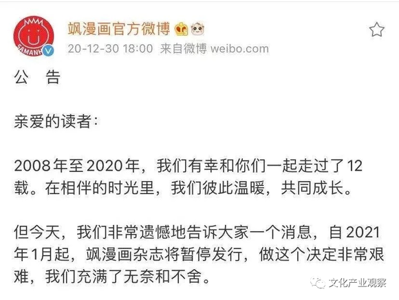 曾经在中学生中风靡一时的漫画品类杂志《飒漫画》,在2020年的末尾宣布告别。