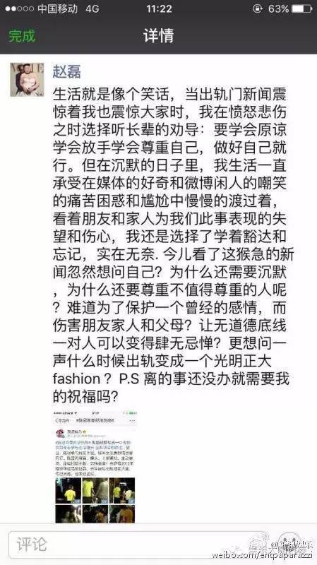 但没想到,女方的丈夫、“华谊高层”赵磊却发文称两人还没离婚,还怒斥陈冠希和秦舒培是“一对无道德底线的人”。
