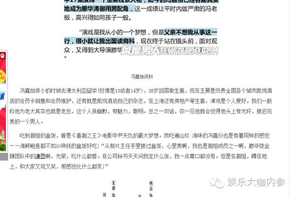 可以侧面佐证赵磊与冯嘉怡之间关系的爆料可能“靠谱”的证据是,这两个人在一些个人经历的信息中存在交集。在赵磊一方,他对外讲述的个人经历里,有“在国内成立高端酒店会员卡服务的酒店营销公司HPG,拥有的客户包括凯悦、万丽等世界顶尖的酒店集团”这样的经历,而冯嘉怡的公开信息中,也称其“28岁回国做生意,主要负责全国各个城市凯越酒店的会员卡销售和会员维护”。