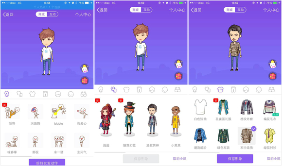 简单的说,厘米秀可以看做QQ秀的移动端升级版,相较于传统PC端QQ秀,厘米秀不仅具有数百款紧跟网络文化的服饰和多个原创IP形象,在聊天过程中,用户只需选择指令,厘米小人将以夸张搞怪的风格将动作演绎出来。除此之外,厘米秀还有更多玩法,比如可以通过偷取好友贴纸的方式收集形象/动作,这让用户把非聊天场景的零散时间用起来,提升了厘米秀的耐玩度。而这种新玩法也开创了养成社交即时互动的先河。
