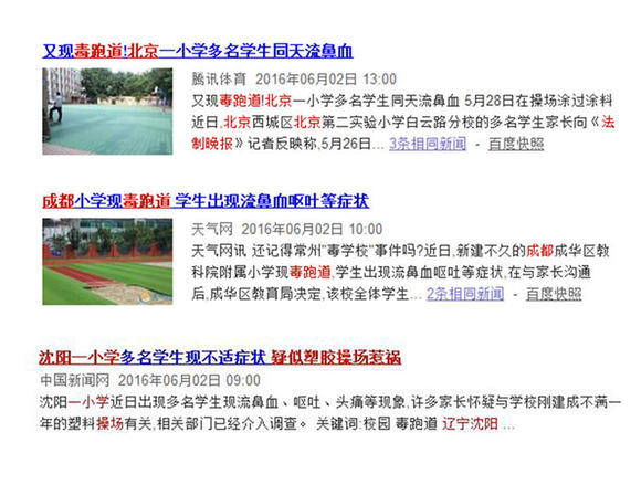 白小“毒操场”疑云并不是个案。今年儿童节以来,短短三天,沈阳、成都又分别爆出两起“小学疑现毒操场”新闻,跑道之“殇”再次引发社会关注。