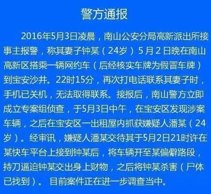 深圳24岁女教师乘车滴滴遭抢劫杀害