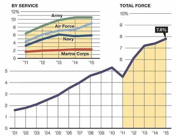 美国空军的肥胖率几乎逐年递增