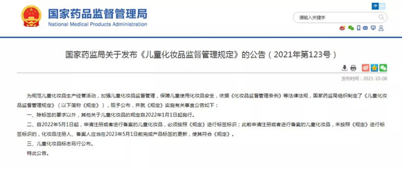如此速度更是体现了国家对儿童化妆品的重视程度。“可以说,国家对于儿童化妆品的重视程度是史无前例的,而这样的强信号,也会让企业不敢轻易在儿童化妆品上‘踩红线’。”一位法规资深人士如是说道。
