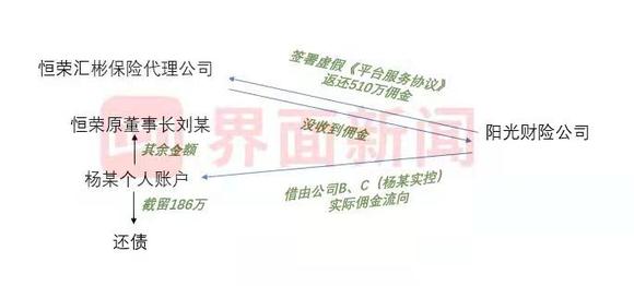 2015年7月至2016年11月期间,杨某担任阳光财险公司业务员。经恒荣公司原董事长刘某牵线,恒荣公司承保阳光财险公司的意外险产品,阳光财险向其支付60%的代理佣金。